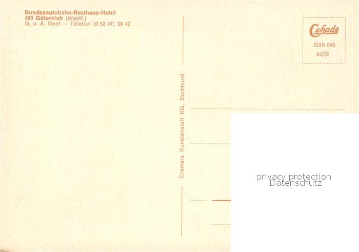 73091575 Guetersloh Bundesautobahn Raststaette postalisch nicht gelaufen Erhaltung siehe scans [KathaD81] KatCode: 11110005754008