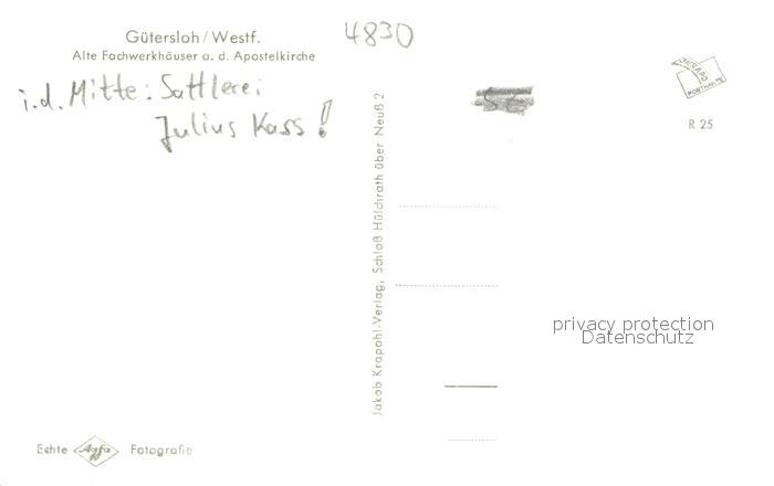73695557 Guetersloh Fachwerkhaeuser Apostelkirche Sattlerei Julius Kass postalisch nicht gelaufen Erhaltung siehe scans [LiesaD40] KatCode: 11110005754008