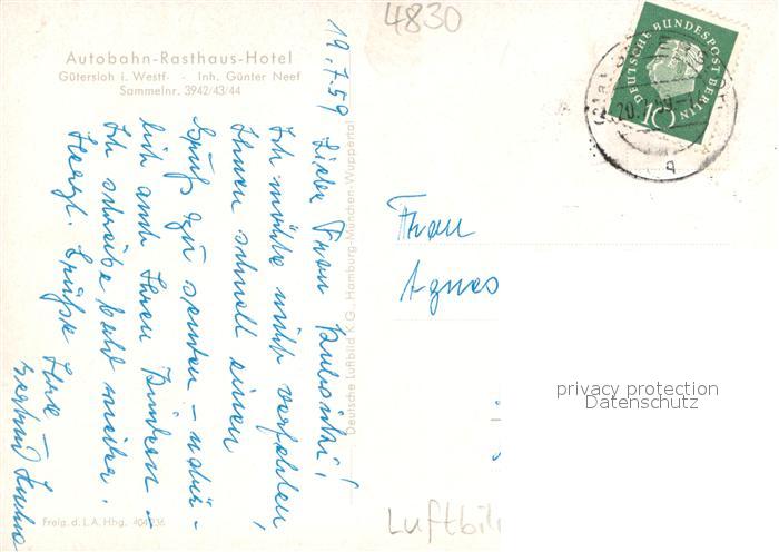 73695795 alte Postkarte Guetersloh Fliegeraufnahme Autobahn-Rasthaus-Hotel postalisch gelaufen Erhaltung siehe scans [LiesaD40] KatCode: 11110005754008