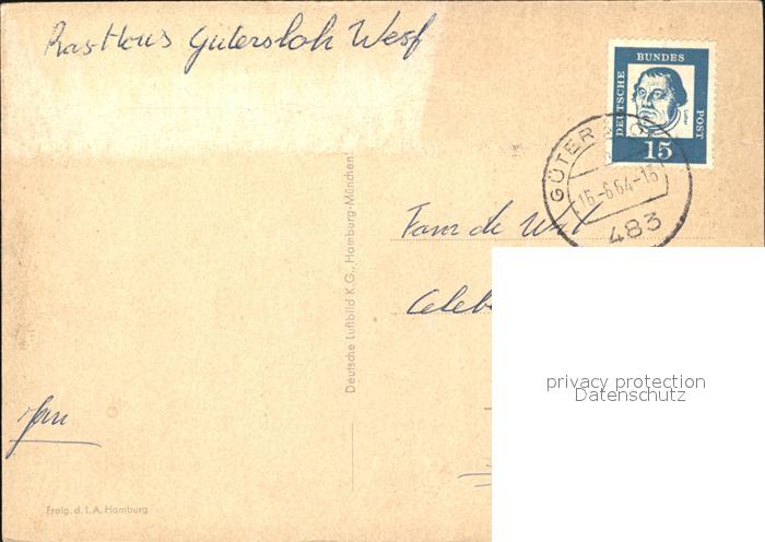 72469039 alte Postkarte Guetersloh Fliegeraufnahme Rasthof postalisch gelaufen Erhaltung siehe scans KatCode: 11110005754008