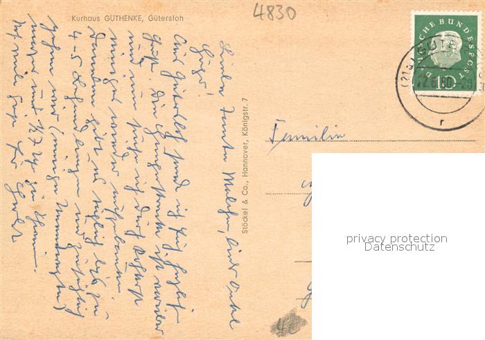 73695794 alte Postkarte Guetersloh Kurhaus Guethenke postalisch gelaufen Erhaltung siehe scans [LiesaD40] KatCode: 11110005754008