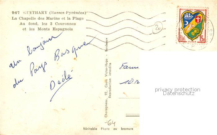 13530194 carte postale Guethary Chapelle des Marins et Plage postalisch gelaufen Erhaltung siehe scans [LiesaD40] KatCode: 11170064164249