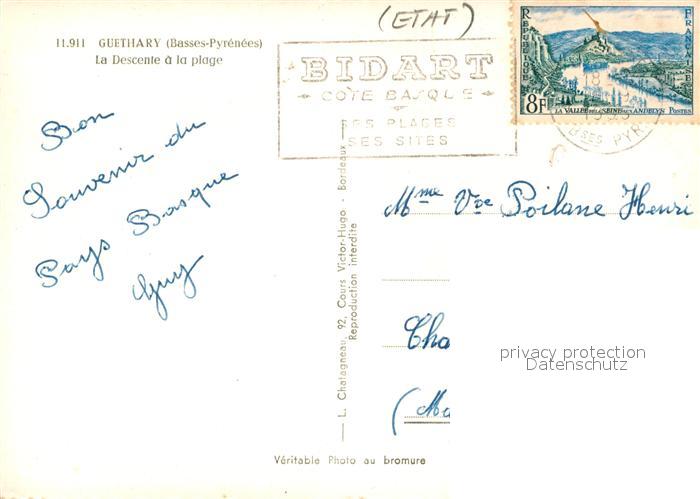 13537574 carte postale Guethary La descente a la plage postalisch gelaufen Erhaltung siehe scans [FriedD77] KatCode: 11170064164249