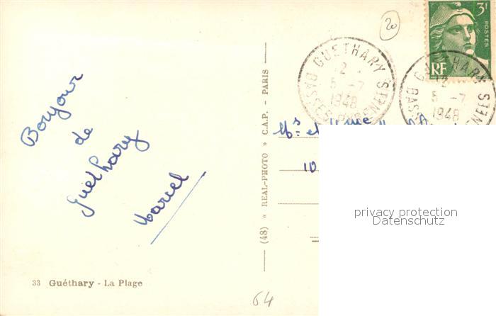 13530193 carte postale Guethary Plage postalisch gelaufen Erhaltung siehe scans [LiesaD40] KatCode: 11170064164249