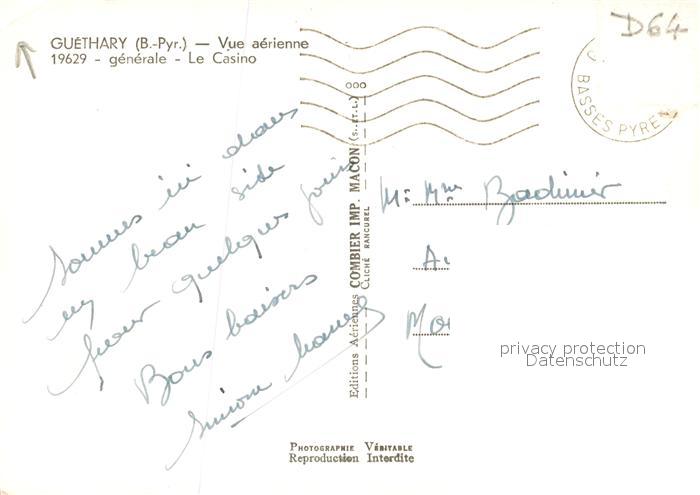 13538886 carte postale Guethary Vue generale aerienne Le Casino postalisch gelaufen Erhaltung siehe scans [WerneD78] KatCode: 11170064164249