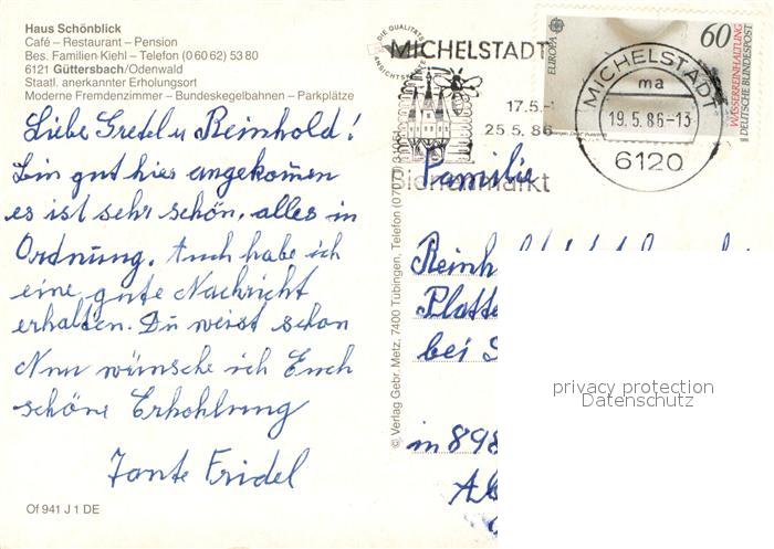 73647098 alte Postkarte Guettersbach Haus Schoenblick Gastraum Kegelbahn Terrasse postalisch gelaufen Erhaltung siehe scans [WerneD78] KatCode: 11110006437012