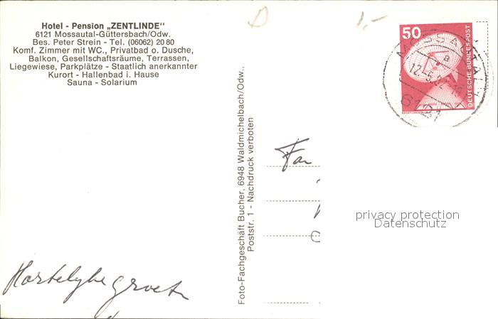 72105516 alte Postkarte Guettersbach Hotel Pension Zentlinde Ortsansicht postalisch gelaufen Erhaltung siehe scans KatCode: 11110006437012