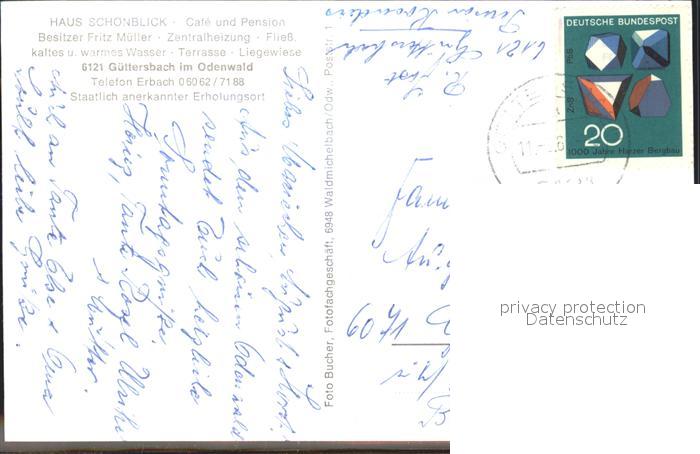 72104863 alte Postkarte Guettersbach Panorama Haus Schoenblick Gastraum postalisch gelaufen Erhaltung siehe scans KatCode: 11110006437012