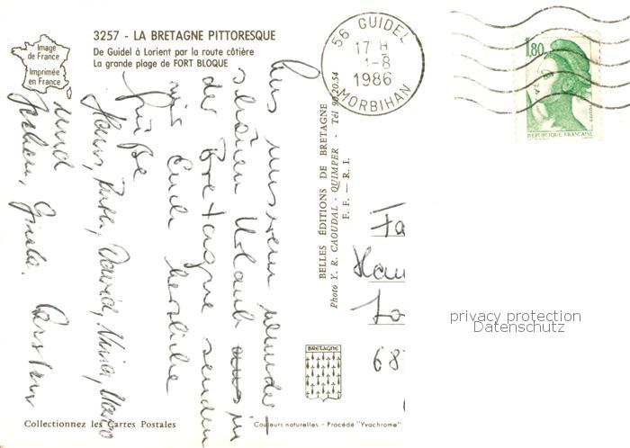 13791816 Guidel 56 Morbihan Da Guidel a Lorient par la route cotiere La grande plage de Fort Bloque Vue aerienne postalisch gelaufen Erhaltung siehe scans [WerneD78] carte postale Wern Katcode 11170056156078