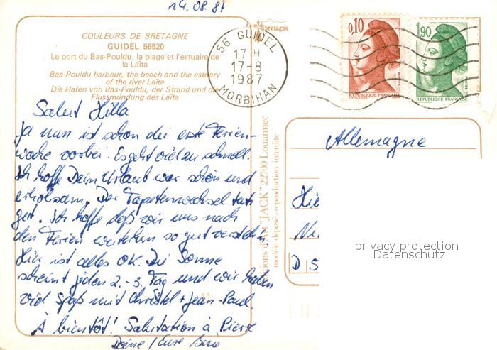 13788996 Guidel 56 Morbihan Port du Bas Pouldu Plage Estuaire de la Laîta vue aérienne postalisch gelaufen Fliegeraufnahme Erhaltung siehe scans [FriedD77] Fliegeraufnahme carte postale Frie Katcode 11170056156078