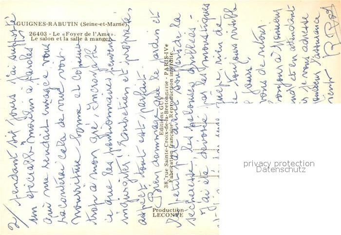 13162405 Guignes Rabutin Foyer de l’Ame Salon et Salle a manger postalisch nicht gelaufen Erhaltung siehe scans [FriedD77] KatCode: 11170077277222