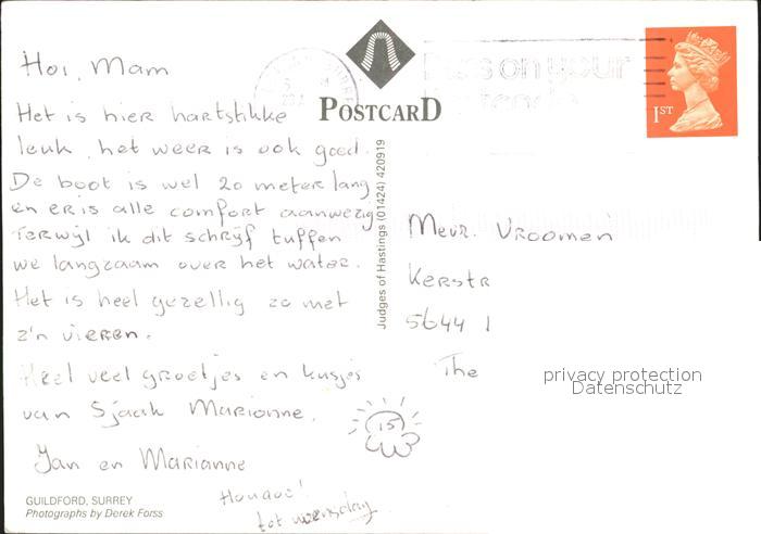 old postcard Guildford River Wey postalisch gelaufen Erhaltung siehe scans