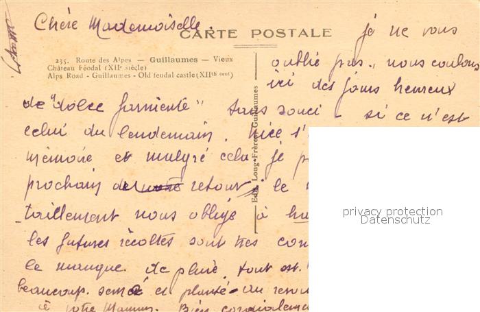 13563784 Guillaumes Ruines du vieux Chateau féodal XIIe siècle postalisch nicht gelaufen Erhaltung siehe scans [FriedD77] KatCode: 11170006206071