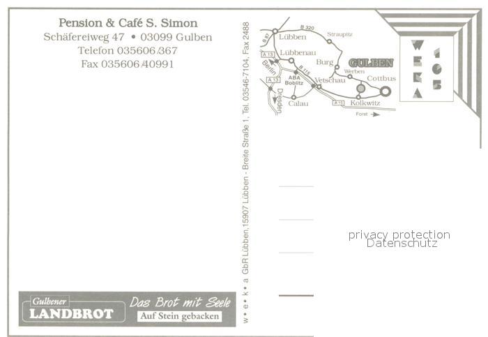 73645176 Gulben Pension Cafe Simon Gastraeume postalisch nicht gelaufen Werbekarte (keine Postkarte) Erhaltung siehe scans [WerneD78] KatCode: 11110012071244