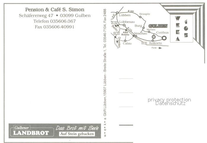 73745896 Gulben Pension und Cafe Simon Gastraeume postalisch nicht gelaufen Erhaltung siehe scans [FriedD77] KatCode: 11110012071244