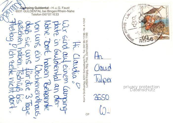 73122928 alte Postkarte Guldental Camping Guldental Fliegeraufnahme postalisch gelaufen Erhaltung siehe scans [NatalD47] KatCode: 11110007133035