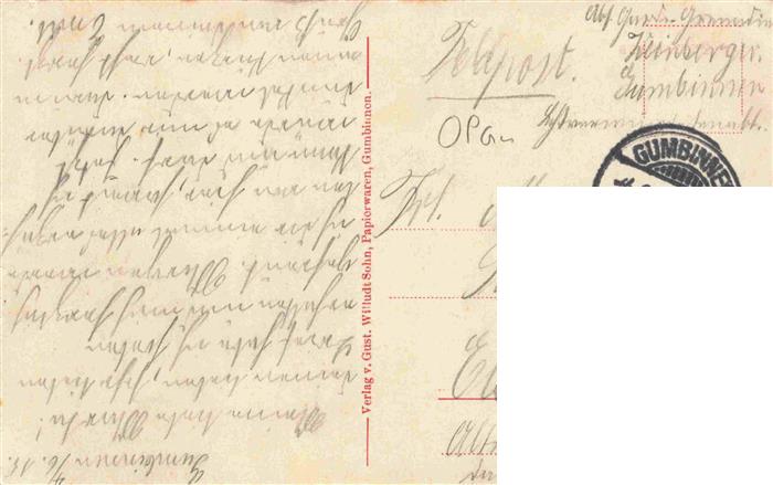 73973934 old postcard GUMBINNEN Goesev Gussew Oblast Kaliningrad RU Denkmal Bruecke Feldpost postalisch gelaufen Erhaltung siehe scans [FriedD77] KatCode: 11440