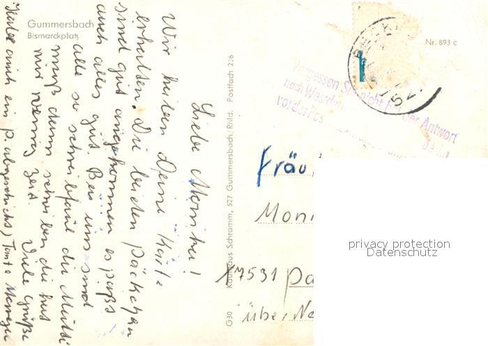 73606358 alte Postkarte Gummersbach Bismarckplatz postalisch gelaufen Erhaltung siehe scans [LiesaD40] KatCode: 11110005374012