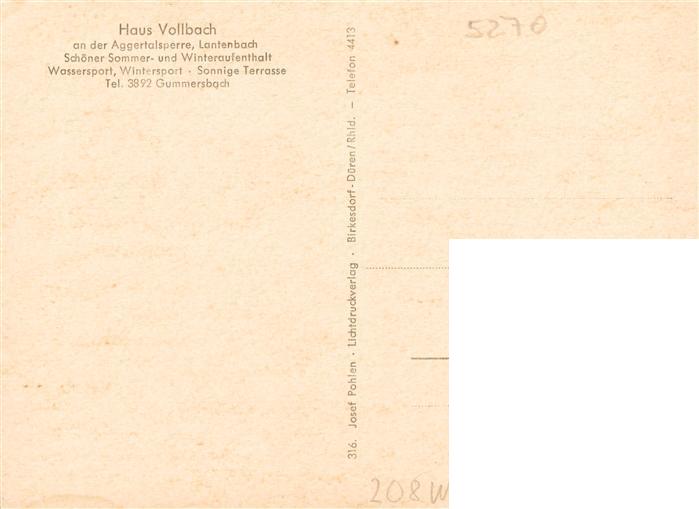 73873470 Gummersbach Haus Vollbach an der Aggertalsperre Gastraum Panorama postalisch nicht gelaufen Erhaltung siehe scans [FriedD77] KatCode: 11110005374012