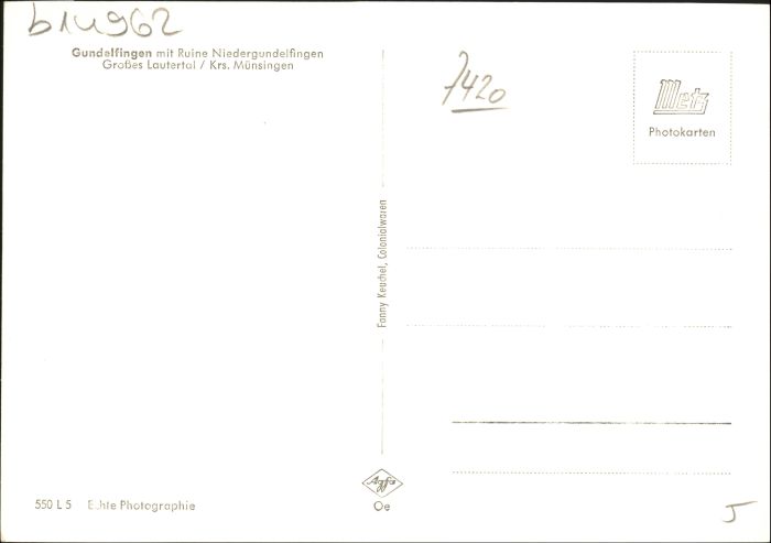 30727707 Gundelfingen Muensingen uine Niedergundelfingen postalisch nicht gelaufen KatCode: 11110008415053