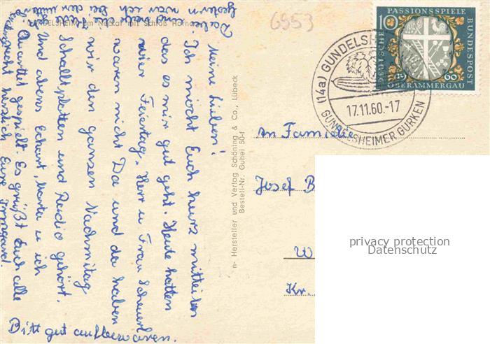 74048362 alte Postkarte Gundelsheim Neckar Blick ueber den Neckar zum Schloss Horneck Frachtkahn Binnenschifffahrt postalisch gelaufen Erhaltung siehe scans [FriedD77] KatCode: 11110008125039
