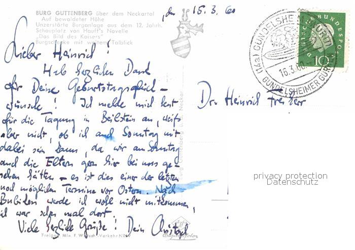 72667000 alte Postkarte Gundelsheim Neckar Fliegeraufnahme Burg Guttenberg postalisch gelaufen Erhaltung siehe scans [LiesaD40] KatCode: 11110008125039