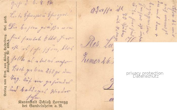 73138004 Gundelsheim Neckar Kuranstalt Schloss Hornegg postalisch nicht gelaufen Erhaltung siehe scans [FriedD77] KatCode: 11110008125039