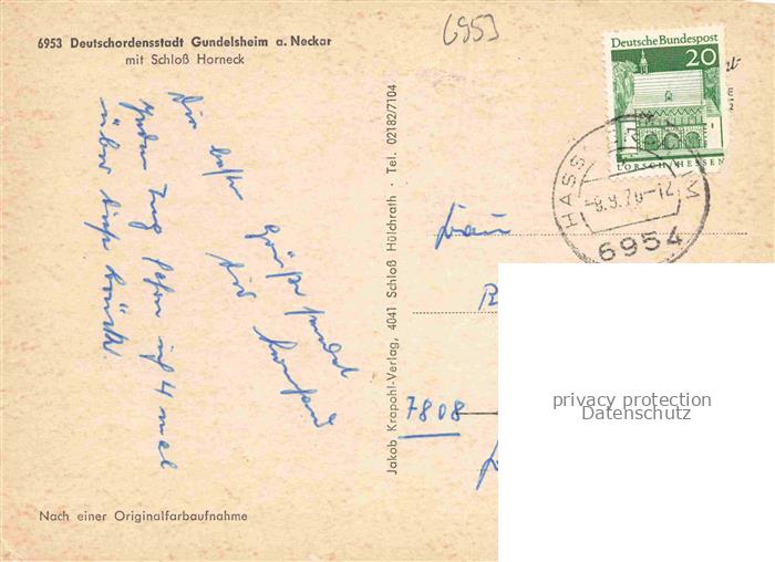 74048237 alte Postkarte Gundelsheim Neckar Panorama Deutschordenstadt mit Schloss Horneck postalisch gelaufen Erhaltung siehe scans [FriedD77] KatCode: 11110008125039