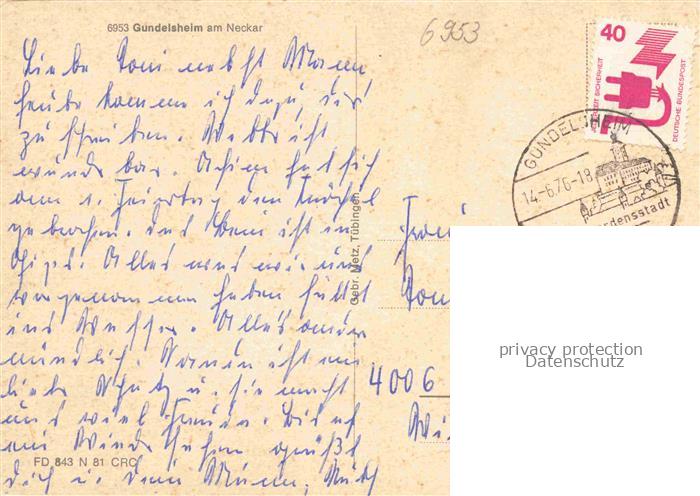 74048250 alte Postkarte Gundelsheim Neckar Panorama Schloss Kirche Altstadt Binnenschiffahrt Neckar postalisch gelaufen Erhaltung siehe scans [FriedD77] KatCode: 11110008125039
