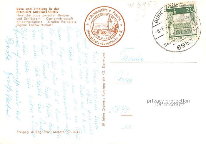 73104927 alte Postkarte Gundelsheim Neckar Pension Michaelsberg Panorama postalisch gelaufen Erhaltung siehe scans [WerneD78] KatCode: 11110008125039