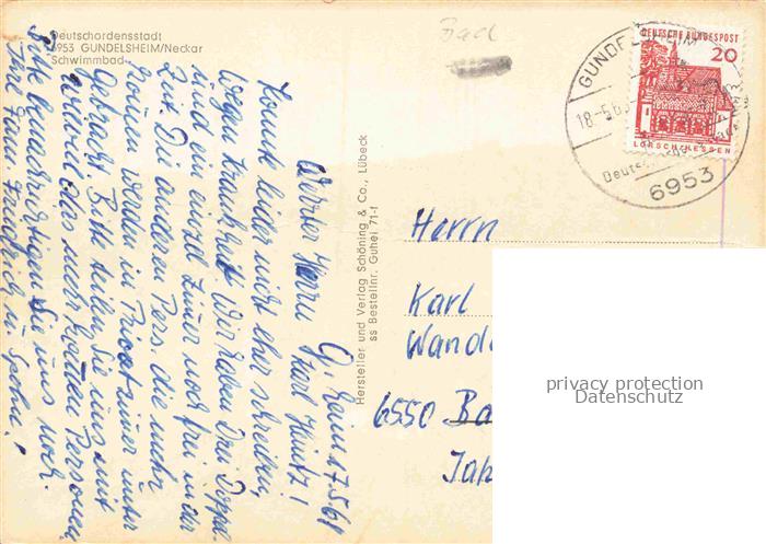 74105937 alte Postkarte Gundelsheim Neckar Schwimmbad postalisch gelaufen Erhaltung siehe scans [WerneD78] KatCode: 11110008125039