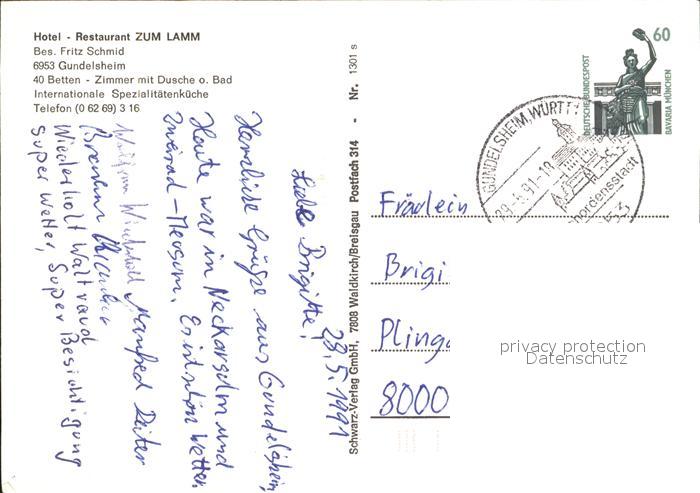 72141649 alte Postkarte Gundelsheim Wuerttemberg Hotel Restaurant zum Lamm Nachtaufnahme Gaststube Panorama postalisch gelaufen Erhaltung siehe scans KatCode: 11110008125039