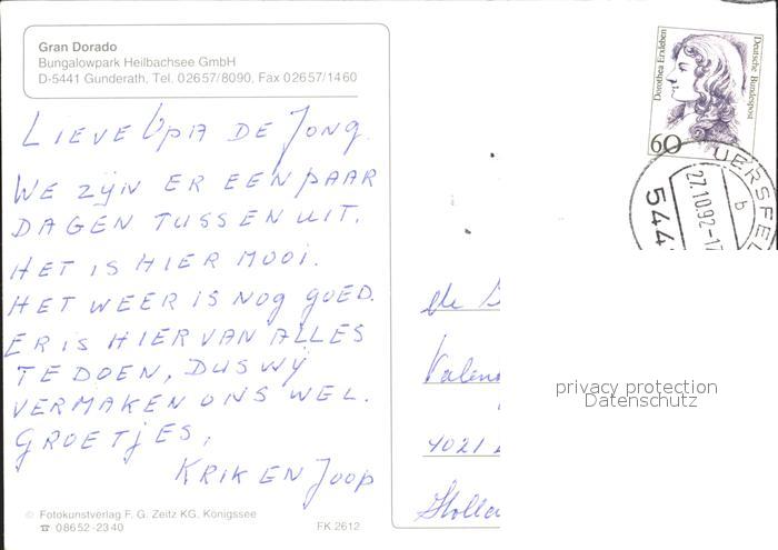 72394546 alte Postkarte Gunderath Gran Dorado Bungalowpark Heilbachsee postalisch gelaufen Erhaltung siehe scans KatCode: 11110007233213