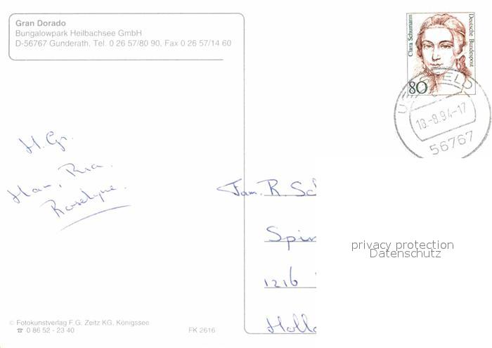 72653740 alte Postkarte Gunderath Gran Dorado Heilbachsee postalisch gelaufen Erhaltung siehe scans [LiesaD40] KatCode: 11110007233213