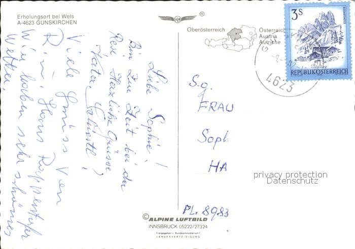 12589834 alte Postkarte Gunskirchen Fliegeraufnahme postalisch gelaufen Erhaltung siehe scans [NatalD47] KatCode: 11390312041808