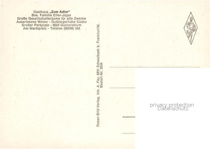 73863972 Guntersblum Gasthaus Zum Adler Gastraeume postalisch nicht gelaufen Erhaltung siehe scans [WerneD78] KatCode: 11110007339024