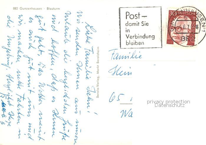 73216132 alte Postkarte Gunzenhausen Altmuehlsee Blasturm Torbogen postalisch gelaufen Erhaltung siehe scans [FriedD77] KatCode: 11110009577136