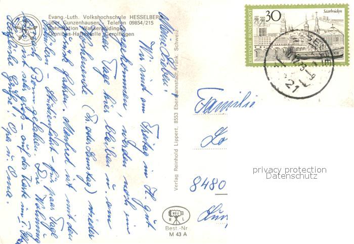 73066205 alte Postkarte Gunzenhausen Altmuehlsee Evang.-Luth. Volkshochschule Hesselberg postalisch gelaufen Erhaltung siehe scans [NatalD47] KatCode: 11110009577136