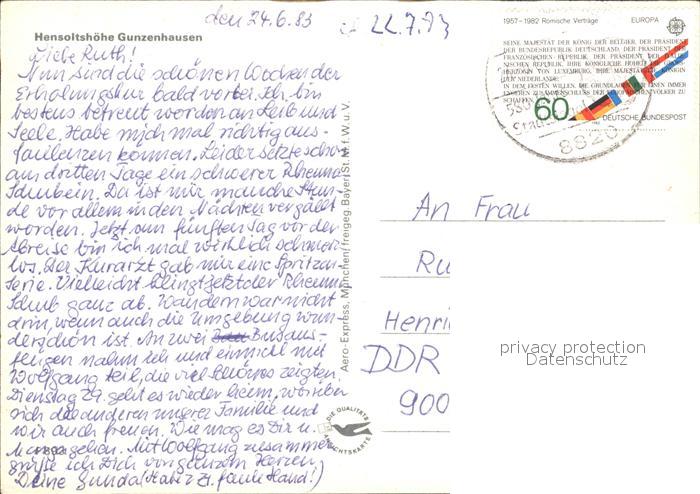 72248119 alte Postkarte Gunzenhausen Altmuehlsee Hensoltshoehe postalisch gelaufen Erhaltung siehe scans KatCode: 11110009577136