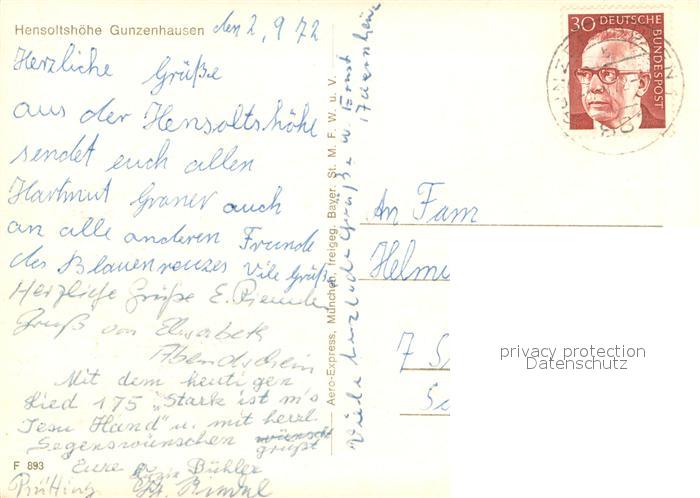 73647392 alte Postkarte Gunzenhausen Altmuehlsee Hensoltshoehe Fliegeraufnahme postalisch gelaufen Erhaltung siehe scans [WerneD78] KatCode: 11110009577136