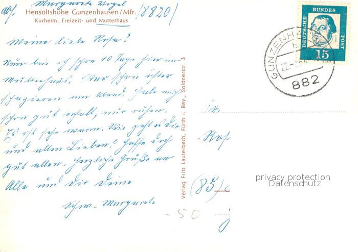 73166037 alte Postkarte Gunzenhausen Altmuehlsee Hensoltshoehe Mutterhaus Kurheim postalisch gelaufen Erhaltung siehe scans [KathaD81] KatCode: 11110009577136