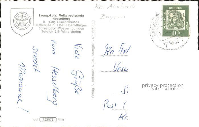 alte Postkarte Gunzenhausen Ostrach Ev luth Volkshochschule Hesselberg postalisch gelaufen Erhaltung siehe scans