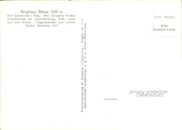 72104902 Gunzesried Berghaus Blaesse postalisch nicht gelaufen Erhaltung siehe scans KatCode: 11110009780115