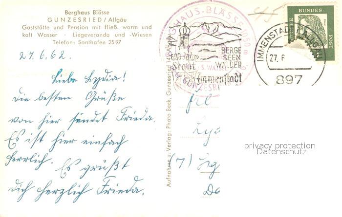 73615428 alte Postkarte Gunzesried Berghaus Blaesse postalisch gelaufen Erhaltung siehe scans [WerneD78] KatCode: 11110009780115