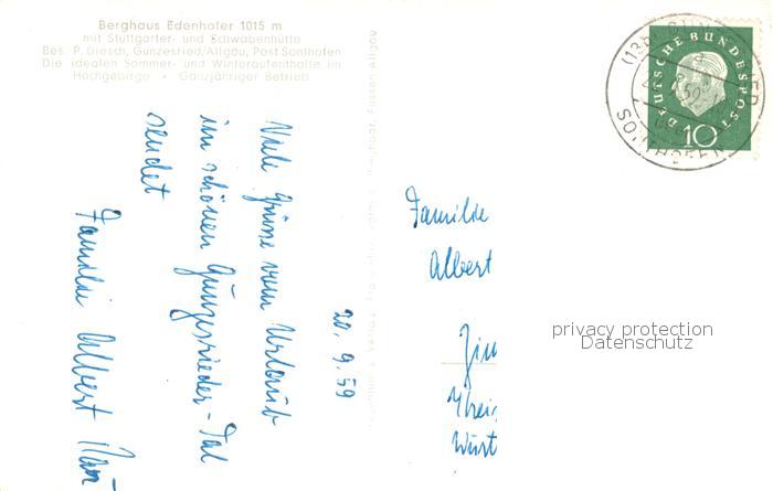 73763695 alte Postkarte Gunzesried Berghaus Edenhofer mit Stuttgarter und Schwabenhuette postalisch gelaufen Erhaltung siehe scans [WerneD78] KatCode: 11110009780115