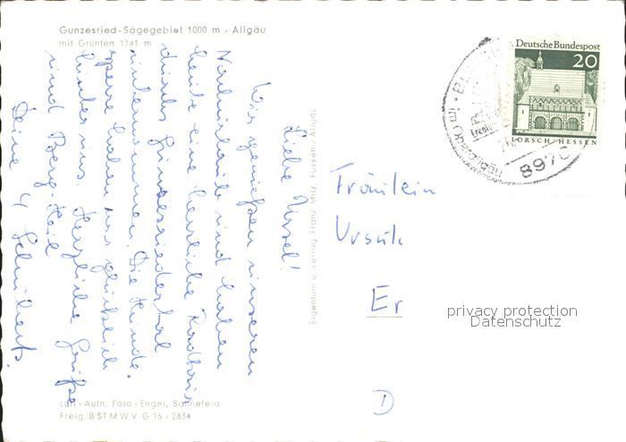 72275365 alte Postkarte Gunzesried Fliegeraufnahme Saegegebiet postalisch gelaufen Erhaltung siehe scans KatCode: 11110009780115