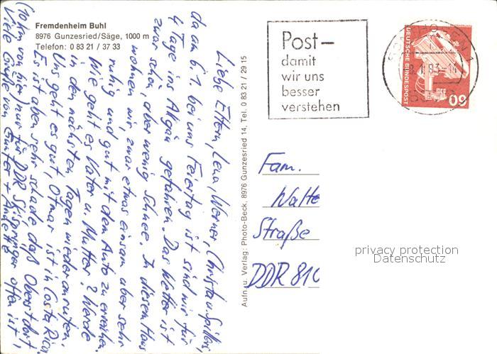 72513226 alte Postkarte Gunzesried Fremdenheim Buhl postalisch gelaufen Erhaltung siehe scans KatCode: 11110009780115