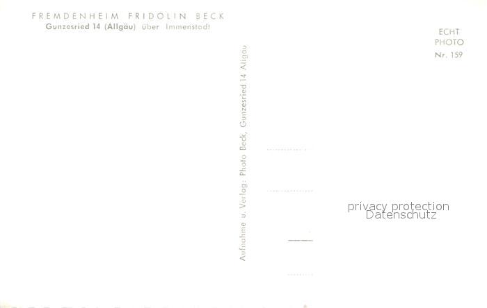 73663447 Gunzesried Fremdenheim Fridolin Beck postalisch nicht gelaufen Erhaltung siehe scans [LiesaD40] KatCode: 11110009780115