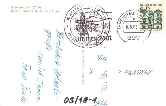 73762471 alte Postkarte Gunzesried Ostertalhuette Aussenansicht postalisch gelaufen Erhaltung siehe scans [LiesaD40] KatCode: 11110009780115