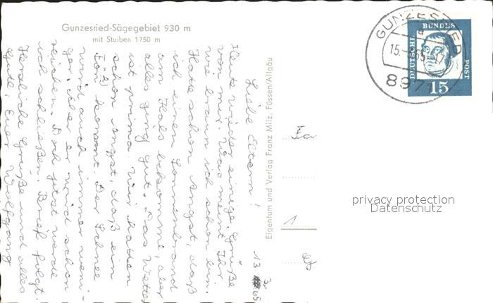 72198689 alte Postkarte Gunzesried Saegegebiet Stuiben postalisch gelaufen Erhaltung siehe scans KatCode: 11110009780115